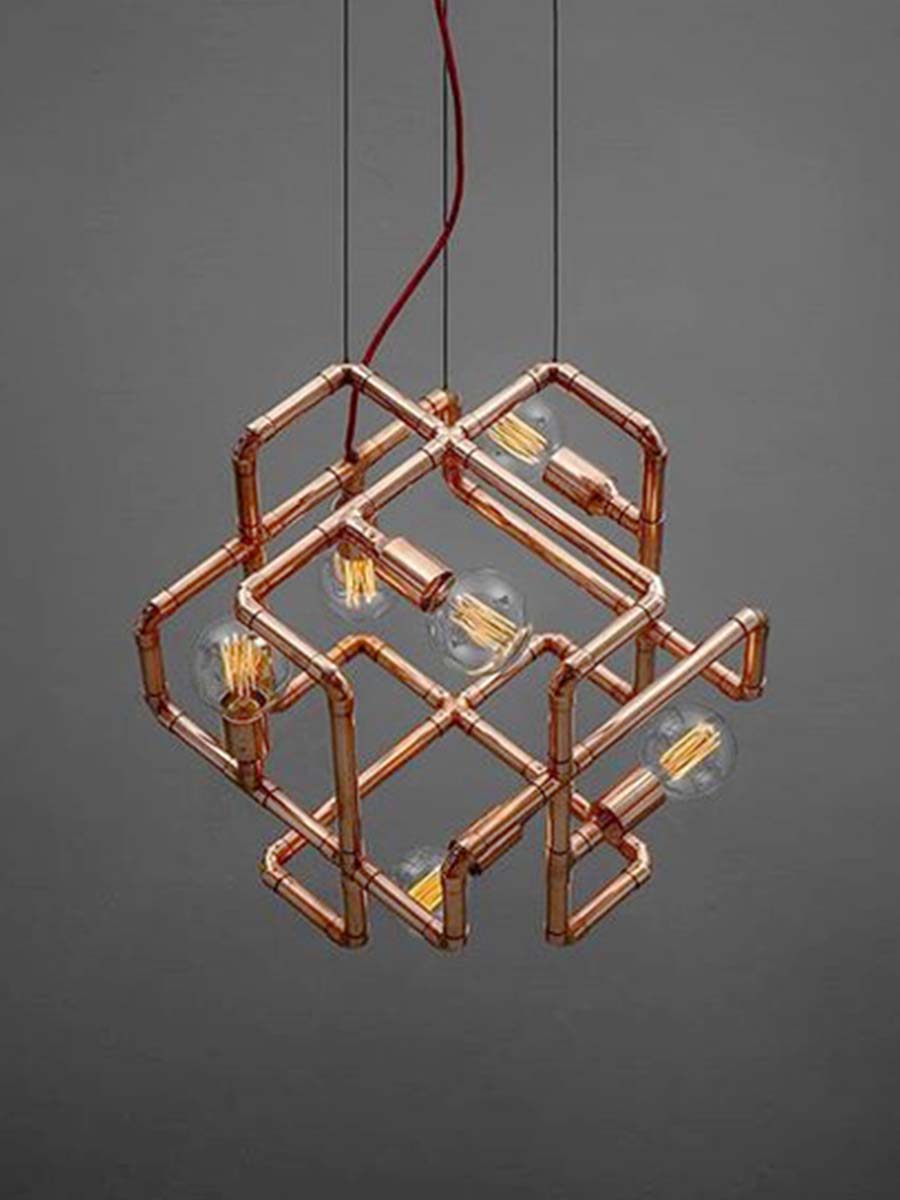 Autêntica, imponente e sofisticada, a luminária Copper Maze by Buonora Studio apresenta-se como uma verdadeira escultura. Seu design tridimensional, inspirado em estruturas industriais, combina tubos metálicos em cobre com lâmpadas expostas, resultando em uma peça ousada que transcende a função de iluminar e se torna protagonista na decoração.
